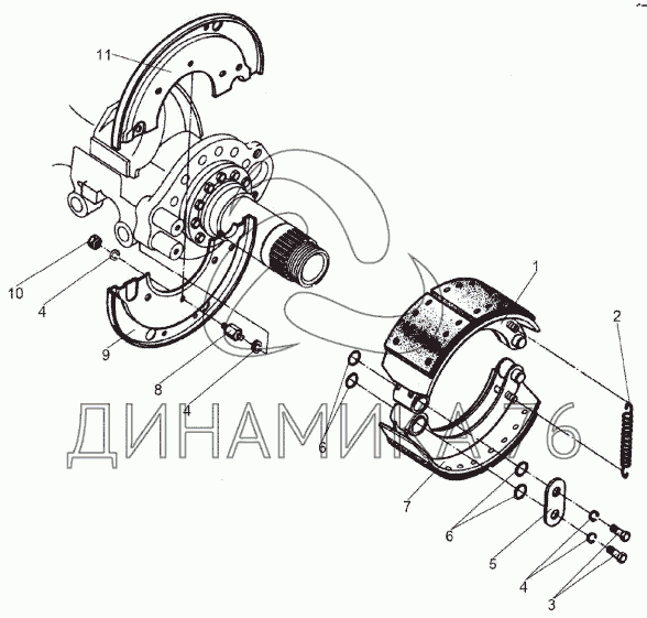 Перечень комплектующих от Тормоз заднего моста на МЗКТ-69234