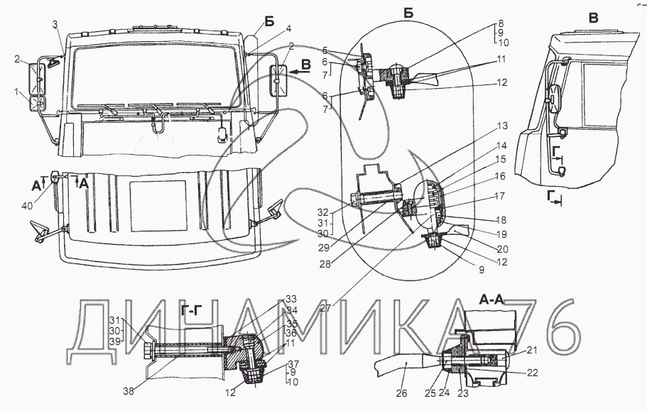 Схемы запчастей предназначены для справочных целей! Мы продаем не все запчасти от Установка держателей зеркал на МЗКТ-69234, представленные в этом списке.