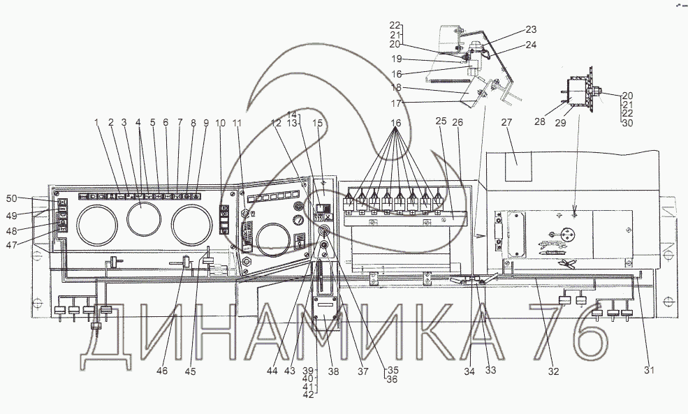 Схемы запчастей предназначены для справочных целей! Мы продаем не все запчасти от Установка электрооборудования в кабине на МЗКТ-69234, представленные в этом списке.
