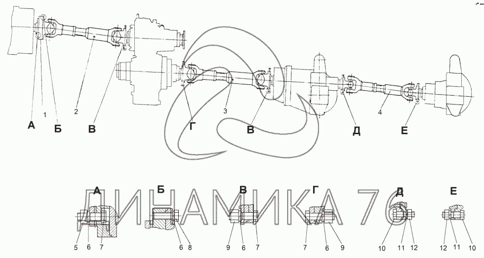 Перечень комплектующих от Установка карданных валов на МЗКТ-69234