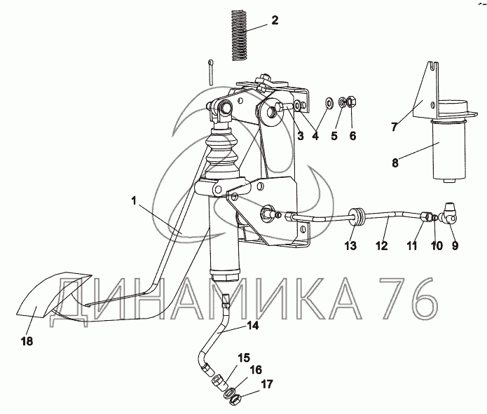Перечень комплектующих от Установка механизма управления сцеплением на МЗКТ-69234