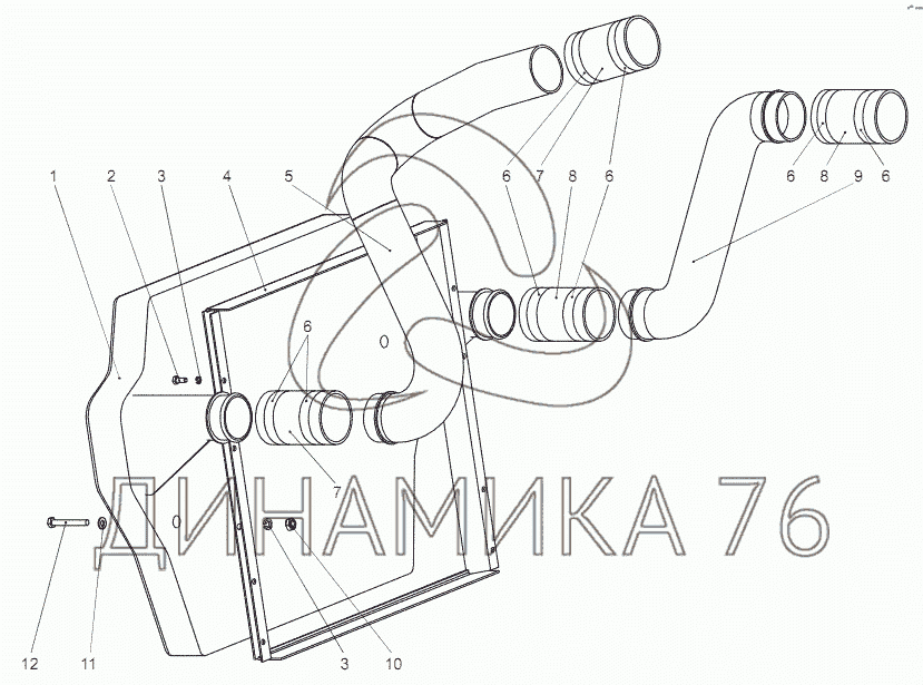 Схемы запчастей предназначены для справочных целей! Мы продаем не все запчасти от Установка охладителя наддува на МЗКТ-69234, представленные в этом списке.