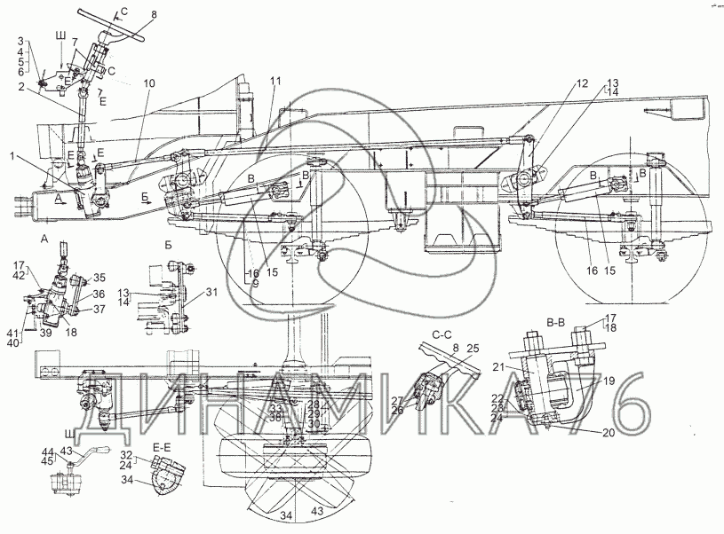 Схемы запчастей предназначены для справочных целей! Мы продаем не все запчасти от Установка рулевого управления на МЗКТ-69234, представленные в этом списке.