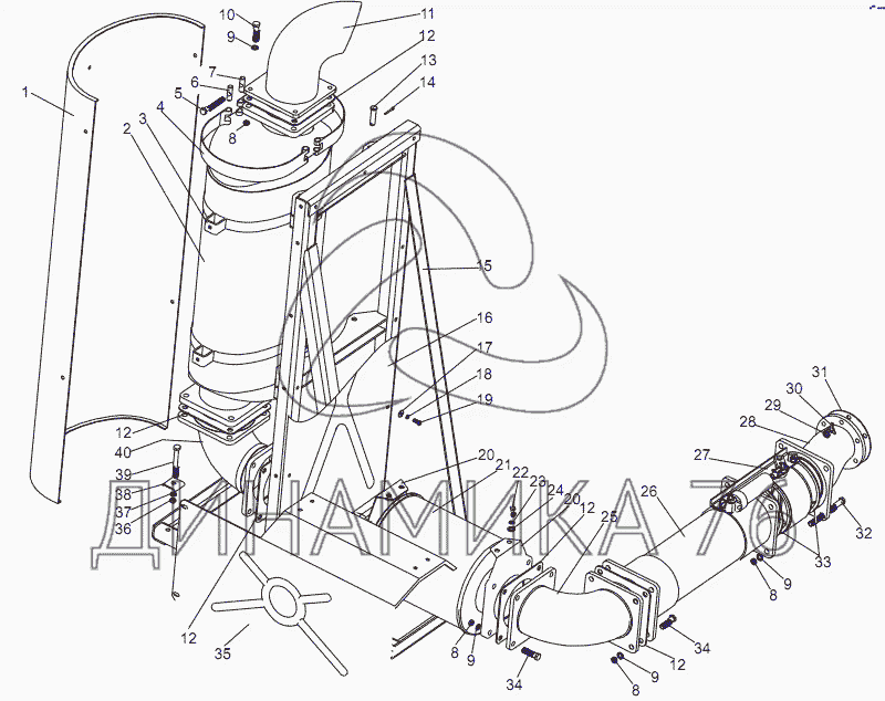 Перечень комплектующих от Установка системы выпуска газов на МЗКТ-69234
