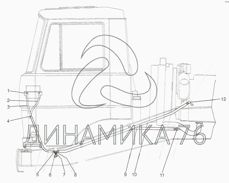 Перечень комплектующих от Установка трубопроводов отопителя кабины на МЗКТ-69234