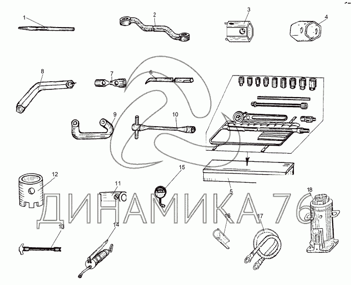 Перечень комплектующих от Инструмент из комплекта ЗИ на МЗКТ-8006