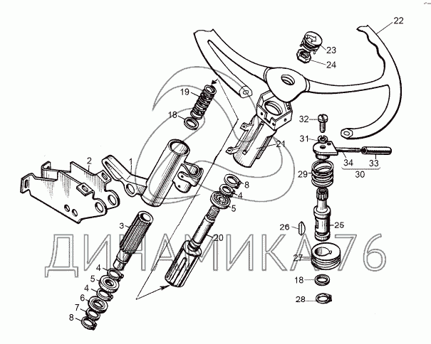 Перечень комплектующих от Колонка рулевая 64221-3444010 на МЗКТ-8006