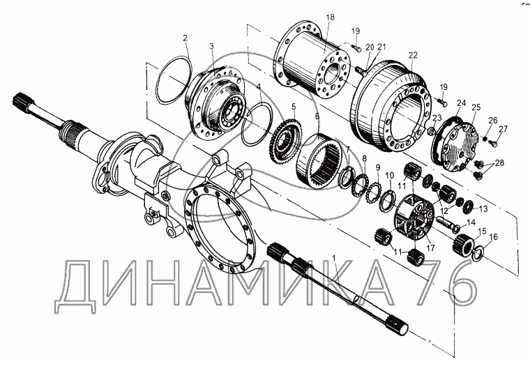 Мост средний. Детали колесной передачи на МЗКТ-8006 (до 2010 г.)