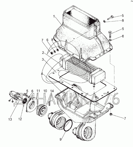 Схемы запчастей предназначены для справочных целей! Мы продаем не все запчасти от Отопитель кабины на МЗКТ-8006, представленные в этом списке.