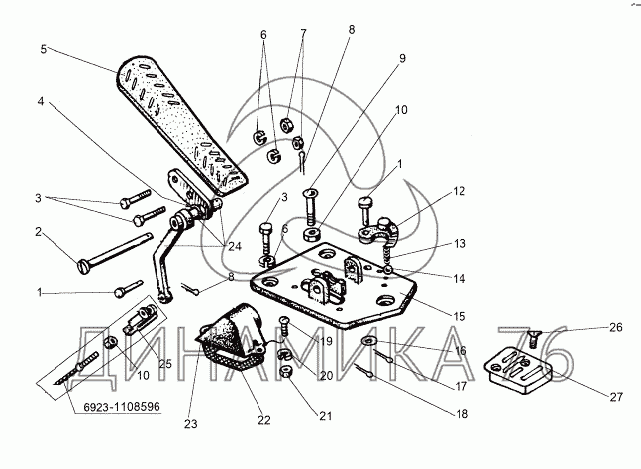 Перечень комплектующих от Педаль с кронштейном на МЗКТ-8006