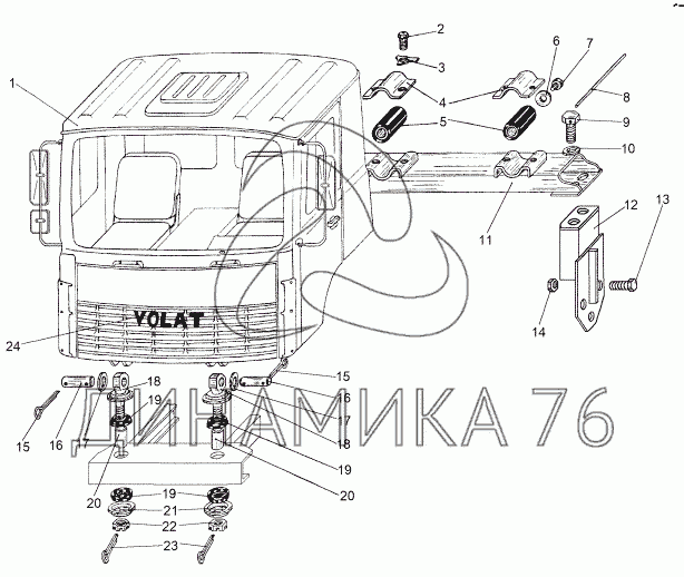 Перечень комплектующих от Подвеска кабины на МЗКТ-8006
