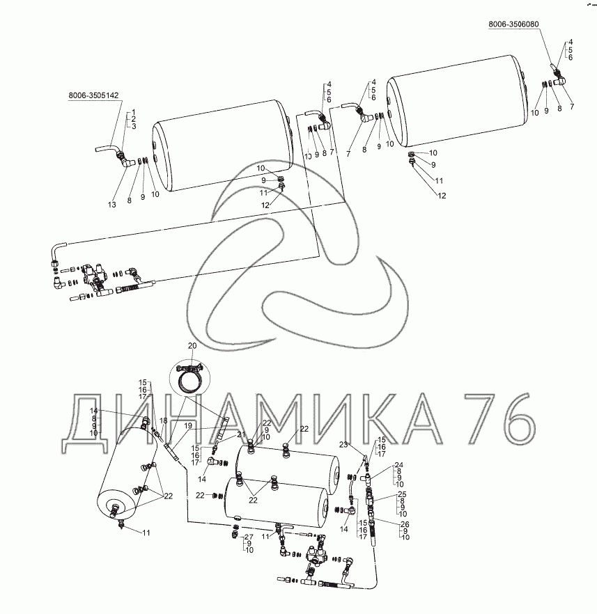 Присоединительная арматура к ресиверам на МЗКТ-8006 (до 2010 г.)