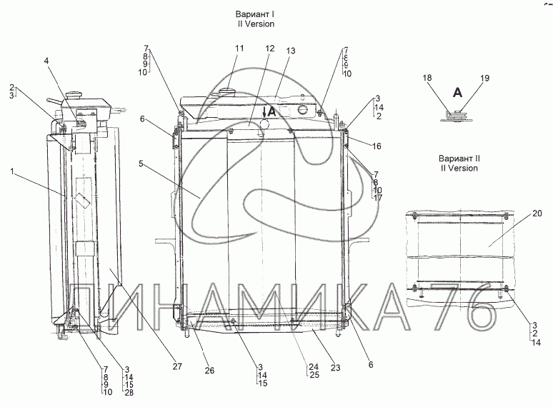 Перечень комплектующих от Радиатор в состоянии установки на МЗКТ-8006