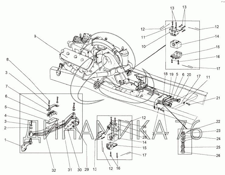 Схемы запчастей предназначены для справочных целей! Мы продаем не все запчасти от Установка двигателя на МЗКТ-8006, представленные в этом списке.