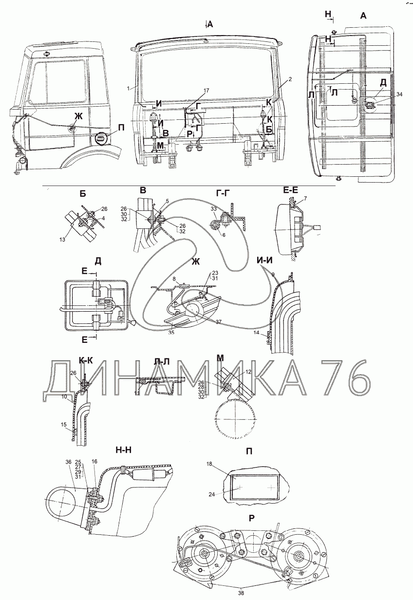 Перечень комплектующих от Установка электрооборудования на кабине на МЗКТ-8006