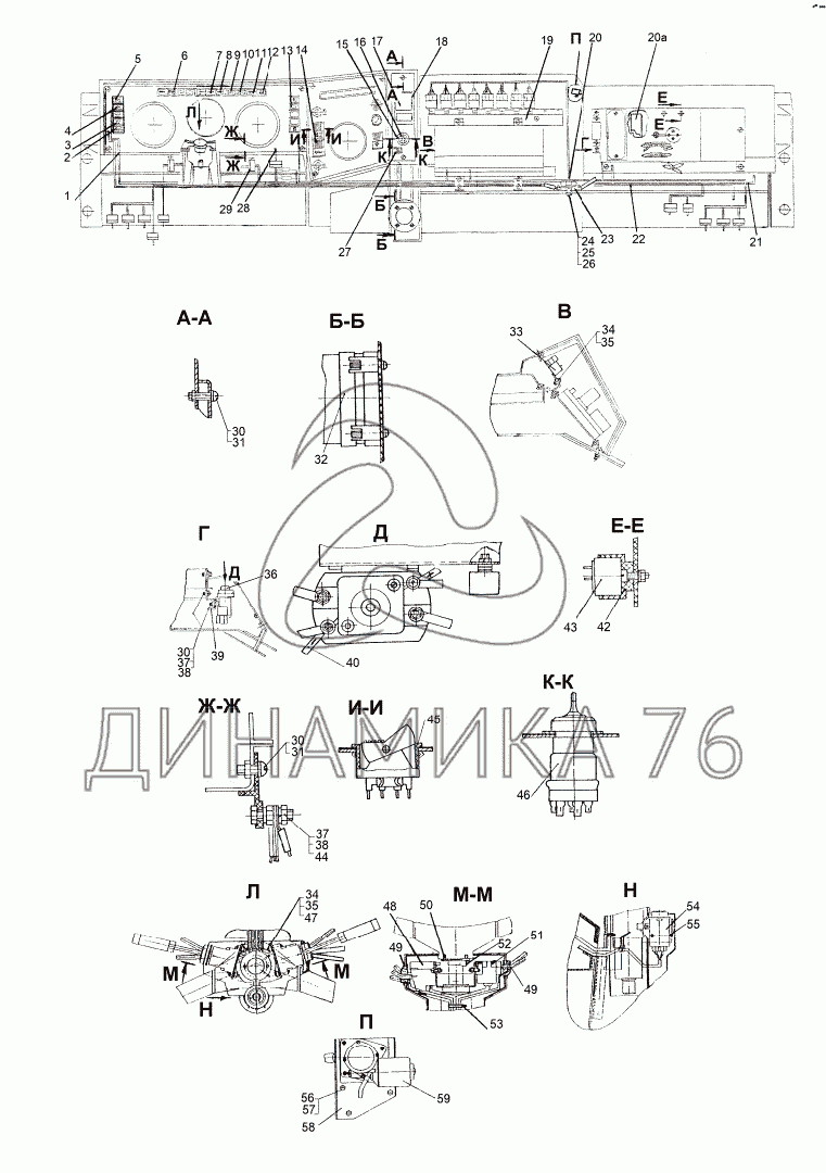 Схемы запчастей предназначены для справочных целей! Мы продаем не все запчасти от Установка электрооборудования в кабине на МЗКТ-8006, представленные в этом списке.