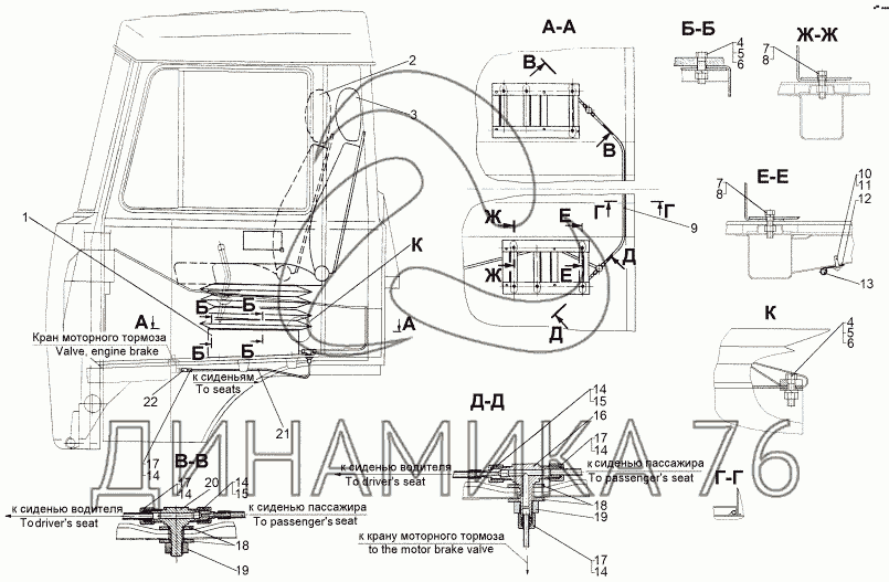 Установка и пневмопитание сидений на МЗКТ-8006 (до 2010 г.)