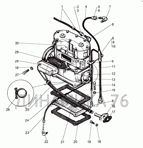 Схемы запчастей предназначены для справочных целей! Мы продаем не все запчасти от Установка компрессора на МЗКТ-8006, представленные в этом списке.