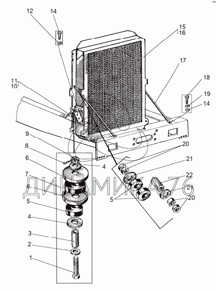 Схемы запчастей предназначены для справочных целей! Мы продаем не все запчасти от Установка радиатора на МЗКТ-8006, представленные в этом списке.