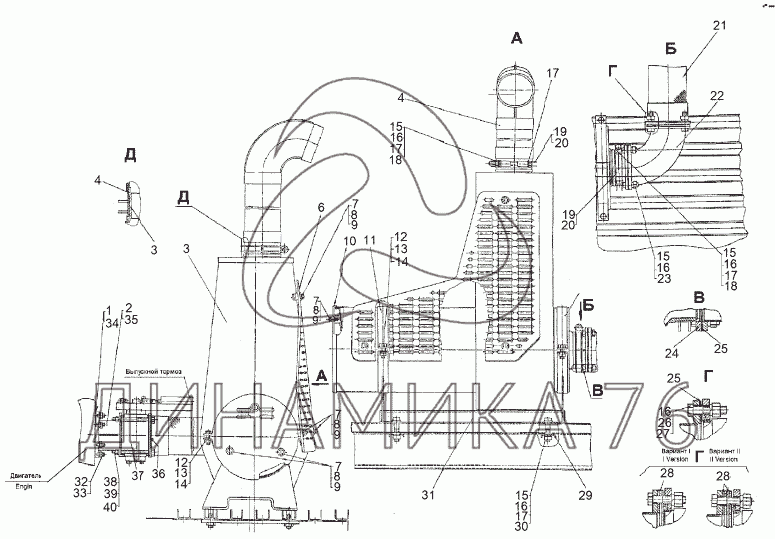 Схемы запчастей предназначены для справочных целей! Мы продаем не все запчасти от Установка системы выпуска на МЗКТ-8006, представленные в этом списке.