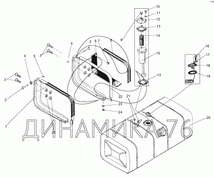 Схемы запчастей предназначены для справочных целей! Мы продаем не все запчасти от Установка топливного бака (5336-1101010) на МЗКТ-8006, представленные в этом списке.