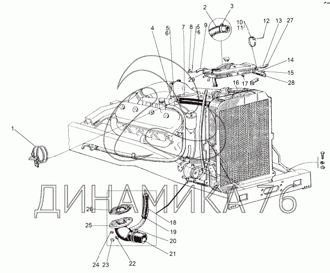 Перечень комплектующих от Установка труб охлаждения двигателя на МЗКТ-8006