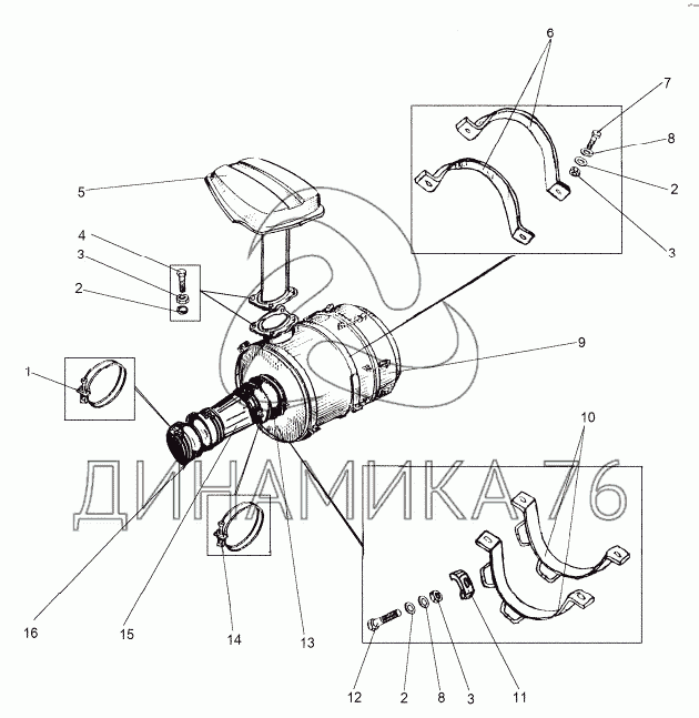 Схемы запчастей предназначены для справочных целей! Мы продаем не все запчасти от Установка воздухоочистителя (238Б-1ТКР9) на МЗКТ-8006, представленные в этом списке.