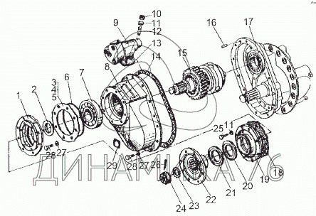Перечень комплектующих от Дифференциал межосевой с картером шестерен на МЗКТ-80211