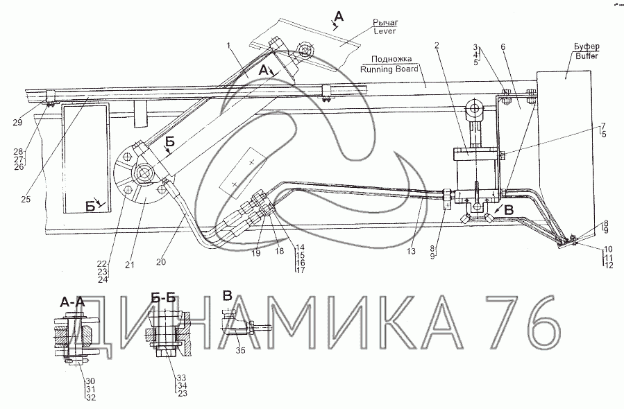 Перечень комплектующих от Механизм подъёма кабины на МЗКТ-80211