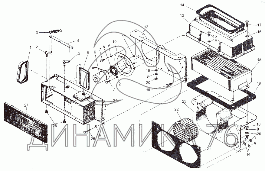 Перечень комплектующих от Отопитель 64221-8101010 на МЗКТ-80211