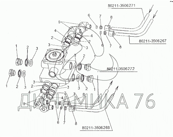 Перечень комплектующих от Присоединительная арматура к тормозному крану на МЗКТ-80211