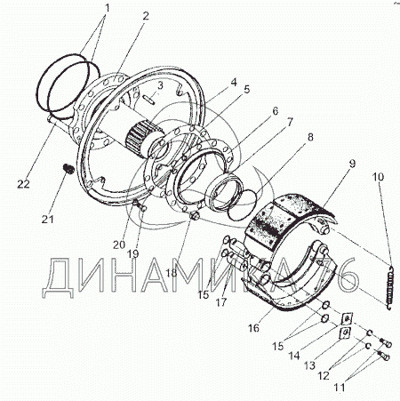 Перечень комплектующих от Тормозной механизм на МЗКТ-80211