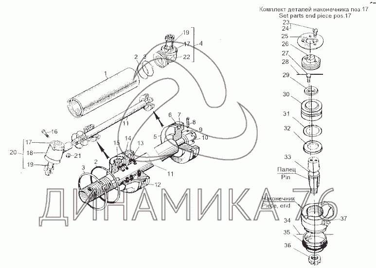 Перечень комплектующих от Цилиндр 8021-3405007 на МЗКТ-80211