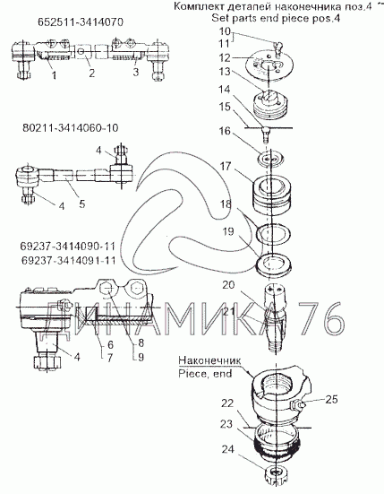Перечень комплектующих от Тяги 80211-3414060-10, 652511-3414070 на МЗКТ-80211