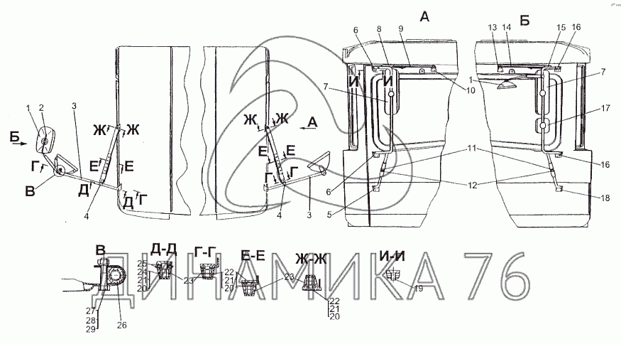 Схемы запчастей предназначены для справочных целей! Мы продаем не все запчасти от Установка держателей зеркал и зеркал на МЗКТ-80211, представленные в этом списке.
