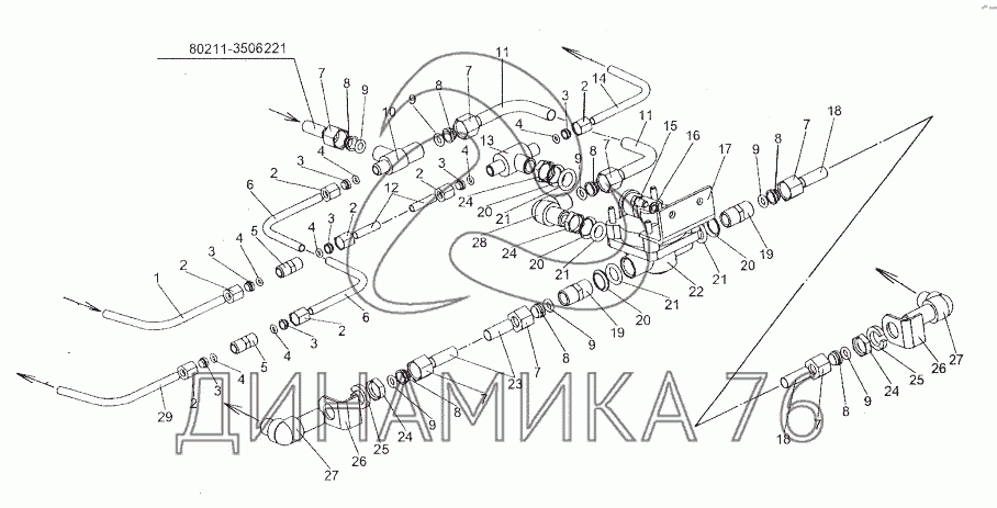 Схемы запчастей предназначены для справочных целей! Мы продаем не все запчасти от Установка клапана ускорительного заднего на МЗКТ-80211, представленные в этом списке.