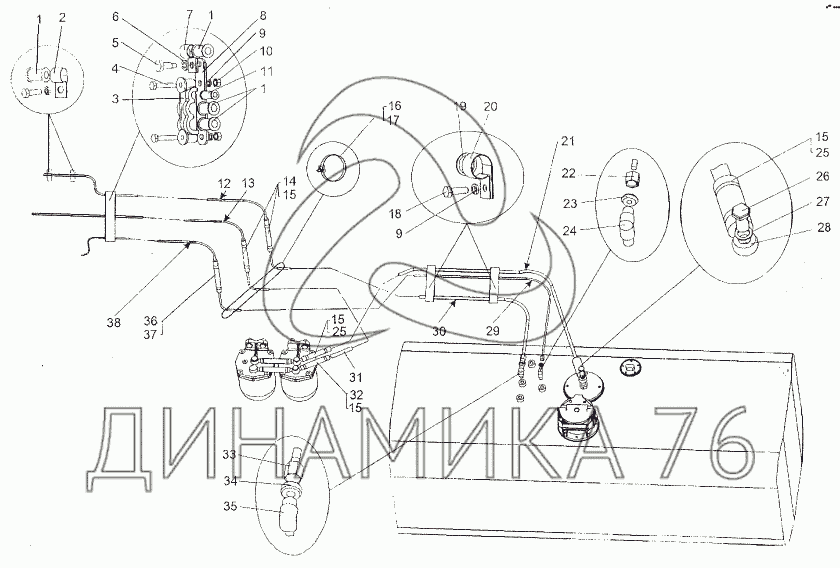 Перечень комплектующих от Установка топливопроводов на МЗКТ-80211