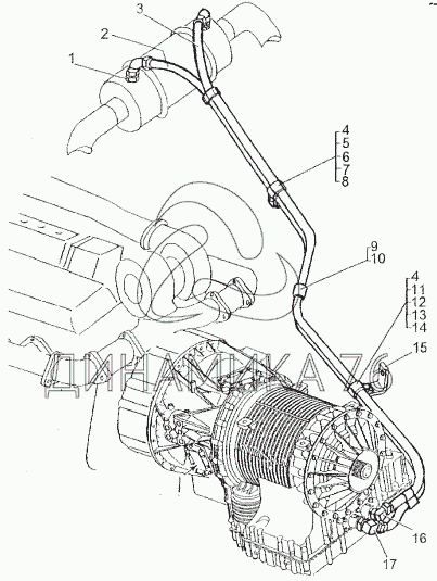 Перечень комплектующих от Установка трубопроводов ГМП на МЗКТ-80211