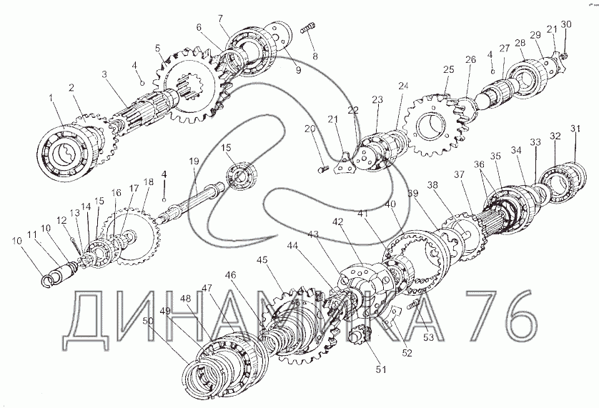 Валы и шестерни раздаточной коробки — МЗКТ-80211: