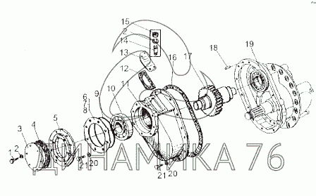 Перечень комплектующих от Ведущая шестерня с картером шестерен на МЗКТ-80211