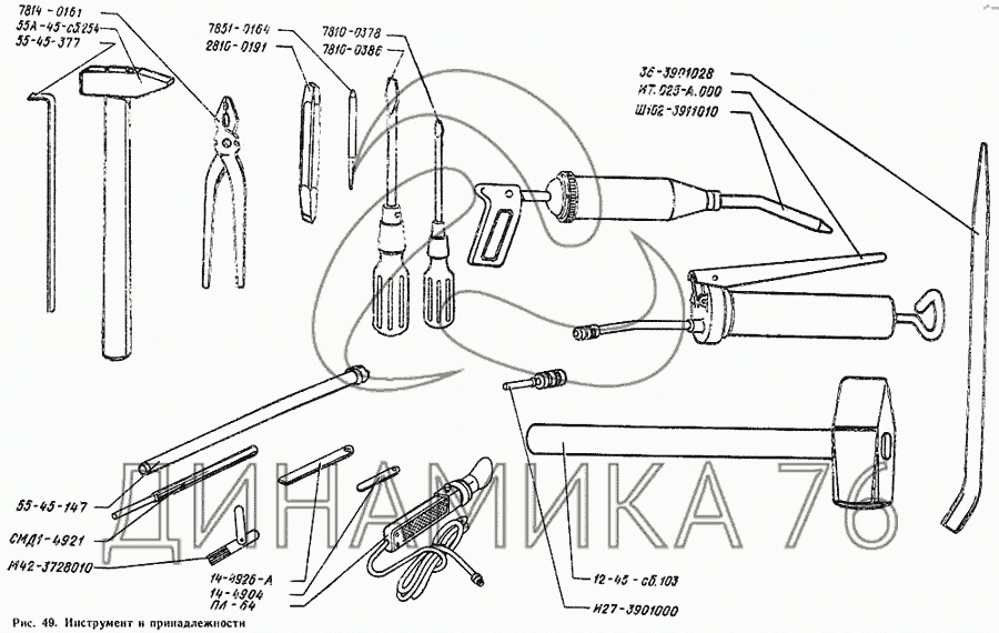 Инструмент и принадлежности на ТДТ-55А (до 1979 г.)