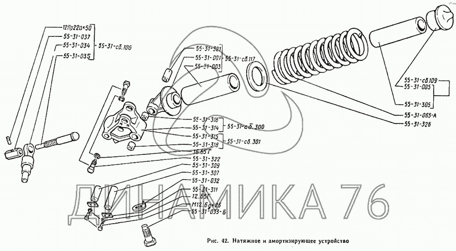 Перечень комплектующих от Натяжное и амортизирующее устройство на ТДТ-55А
