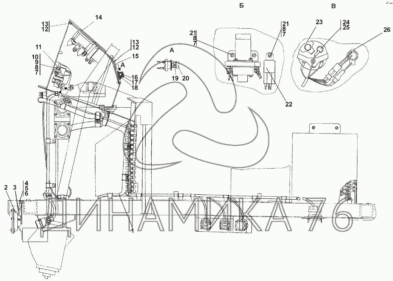 Схемы запчастей предназначены для справочных целей! Мы продаем не все запчасти от Электрооборудование пола кабины на ПК-12.02К, представленные в этом списке.