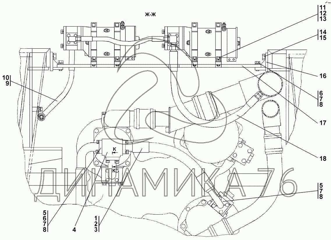 Перечень комплектующих от Гидросистема управления поворотом на ПК-12.02К
