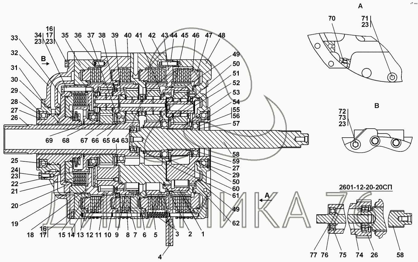 Перечень комплектующих от Коробка передач планетарная на ПК-12.02К