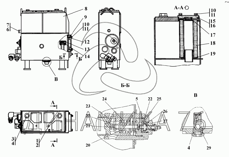 Схемы запчастей предназначены для справочных целей! Мы продаем не все запчасти от Бак гидросистемы на Шасси ТП-20.02, представленные в этом списке.