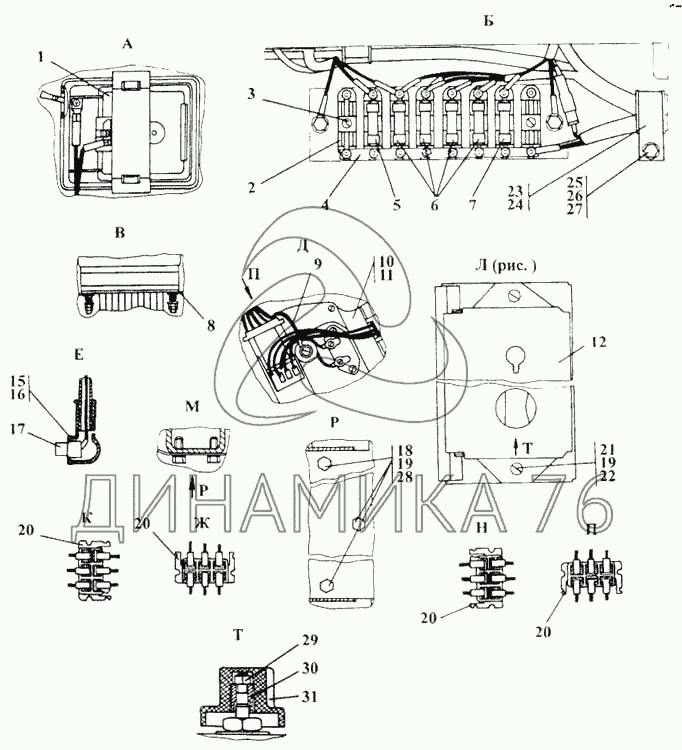Схемы запчастей предназначены для справочных целей! Мы продаем не все запчасти от Блок выключателей на Т-20.01Я, представленные в этом списке.