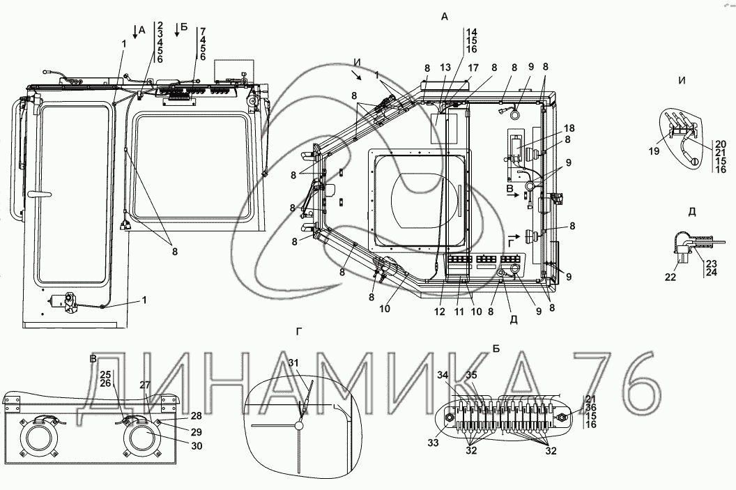 Перечень комплектующих от Электрооборудование крыши кабины на Т-25.01К1