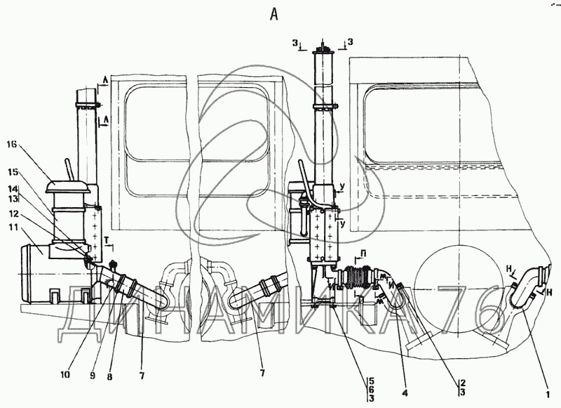 Установка систем воздухоочистки и выпуска — Т-330: