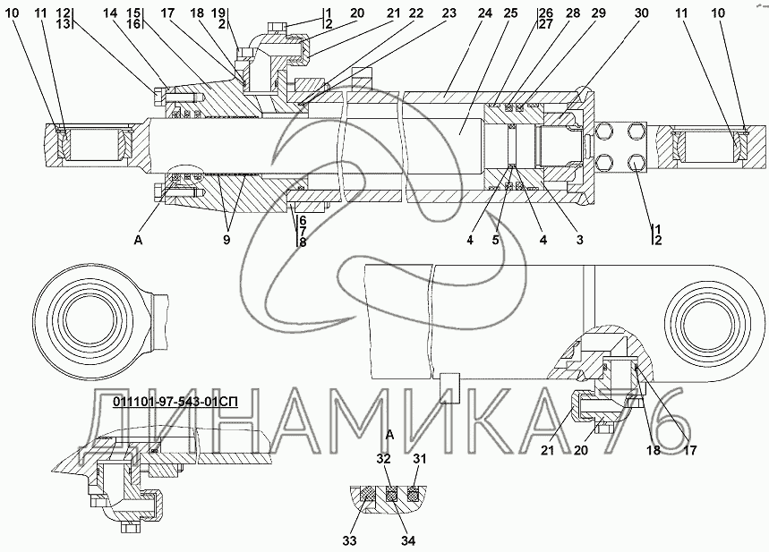 Перечень комплектующих от Гидроцилиндр диам. 100 на Т-9.01Я